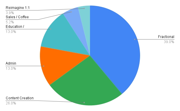A year+ into building my portfolio career, I wanted to share a breakdown (ever-changing!), including how I spend my time, where my leads are coming from, and how my view on marketing has changed from a year ago.